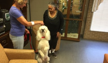 June 9, 2017 by admin Therapy Dogs Visit Manhattan – June 9, 2017 Manhattan Nursing and Rehabilitation Center, LLC’s residents enjoyed a visit from several therapy dogs in June! It was so much fun to watch the pet do tricks and love on the residents. We can’t wait until they come back again! Back to News Celebration! Manhattan Nursing and Rehabilitation Center celebrates Mardi Gras in style! Just one of the many fun activities that the residents here at Manhattan can participate in.